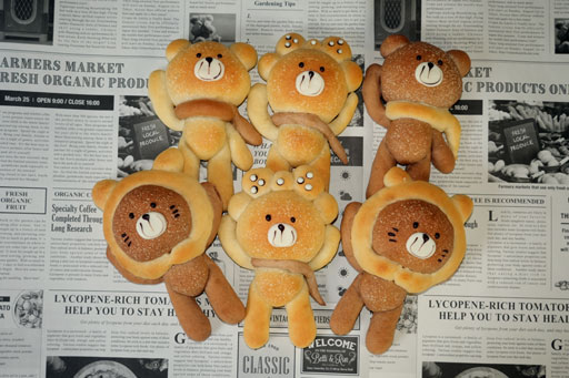 当店で人気の「くまぱん」でございますが仕上がりの時間は午前11時45分頃(ご予約の状況や季節によって変わります)になります。